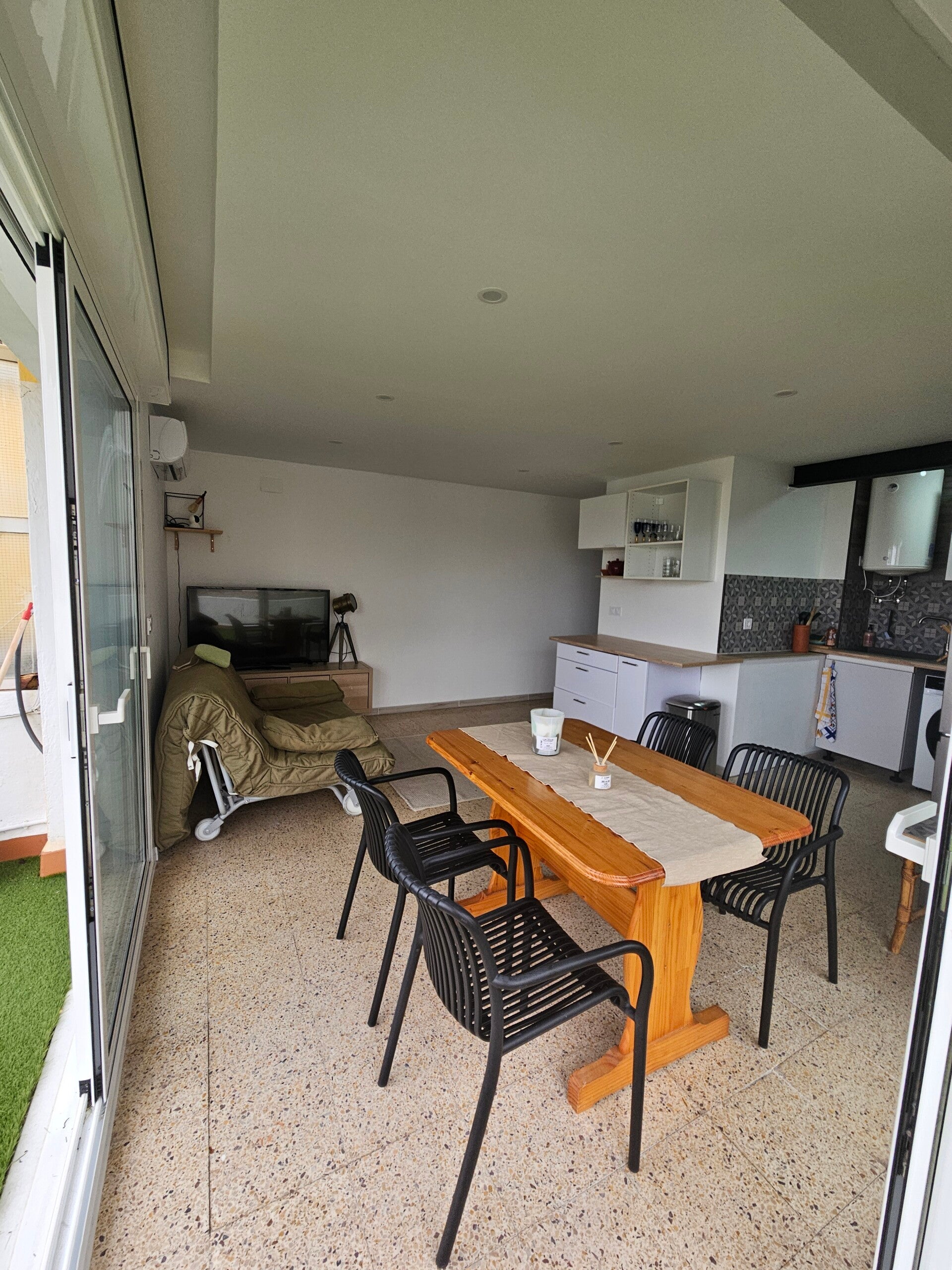 Imaginez des petits-déjeuners sous le soleil méditerranéen, des déjeuners en famille ou des apéritifs entre amis sur notre magnifique terrasse privative de 80 m². C'est l'endroit parfait pour créer des souvenirs précieux, profiter du soleil de la Costa Brava et vous détendre en toute intimité. Un véritable atout pour des vacances exceptionnelles avec vos enfants. 8 chaises disponibles, table spécifique extérieur. Pas de barbecue possible !